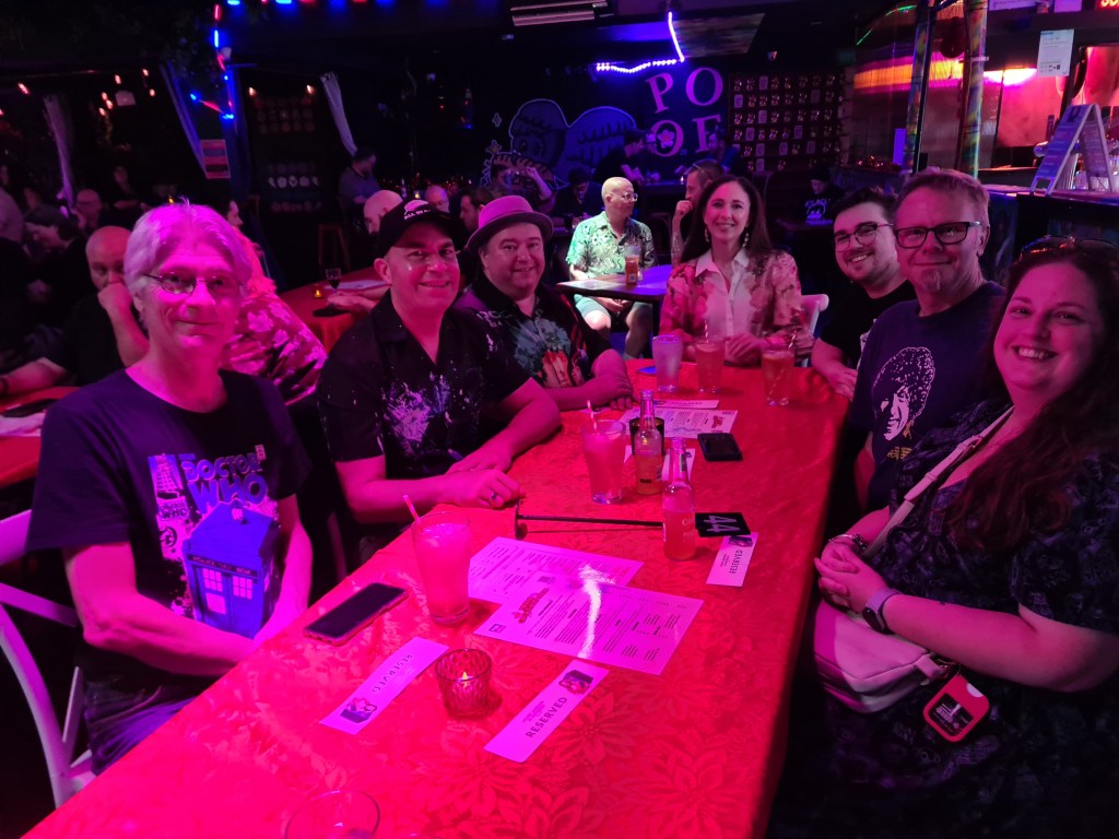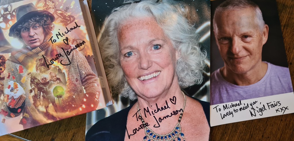 The Venue was perfect for it. Intimate, personal, just the right size for the audience. Great food and drinks were also available. Afterwards, Louise and Nigel “worked the room” as only professionals as they are could, as those with VIP tickets to the Sunday Event gathered in the Cocktail Bar after the show. This event replaced the usual VIP Dinner that comes with each visiting Doctor Who personality.